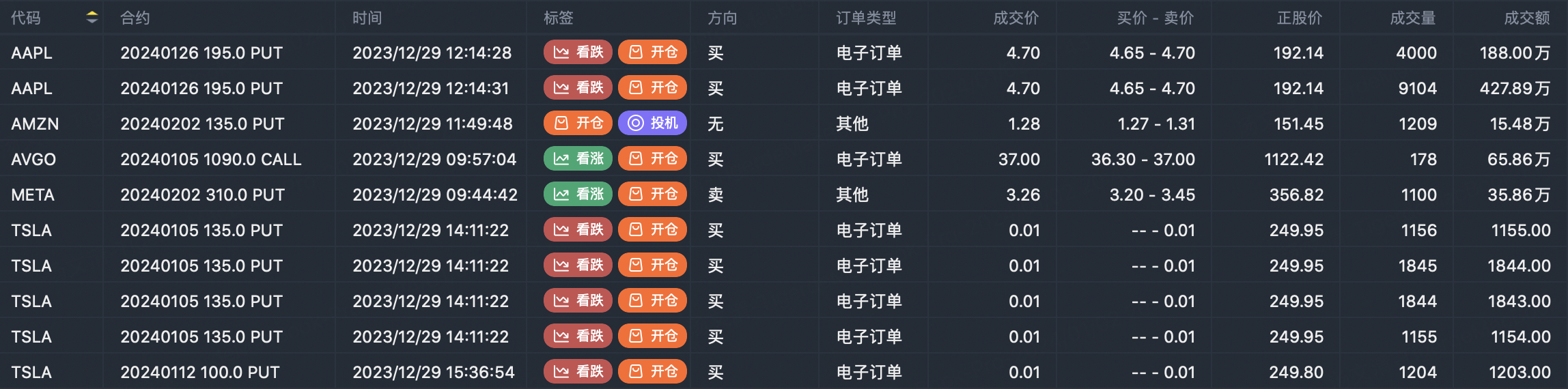 Note: This image data is from Tiger PC. This screen is a significant sell open position for an option contract in the market. A sell of a call option means that the trader believes that the underlying trend has peaked, and a sell of a put option means that the trader believes that the underlying trend has bottomed. These contract openings typically indicate significant activity in the underlying stock, including whether the trader is willing to accumulate a long or short option position.