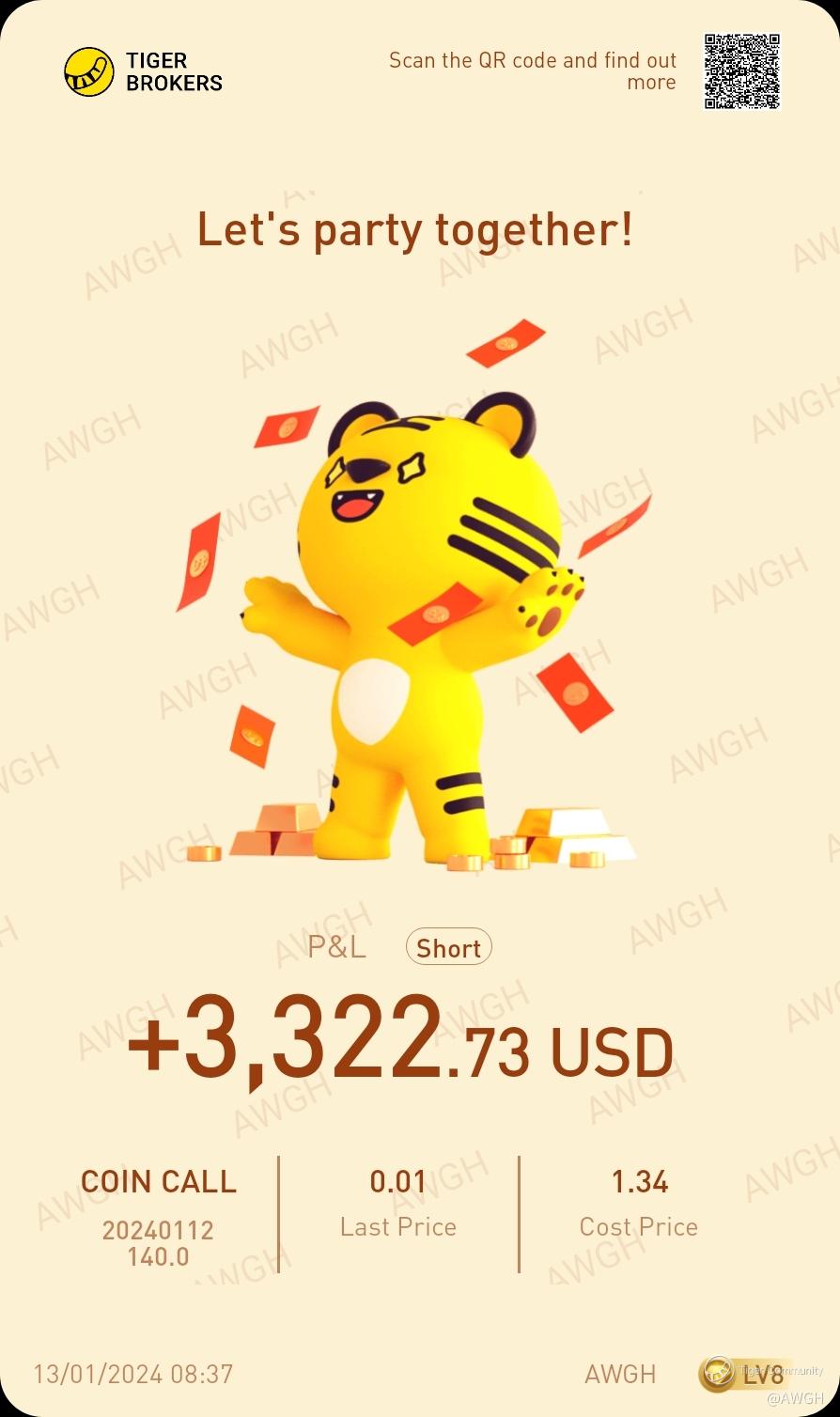 $COIN 20240112 140.0 CALL$ 8.9% gain in capital. If you can't beat them join them. Don't resist the market.