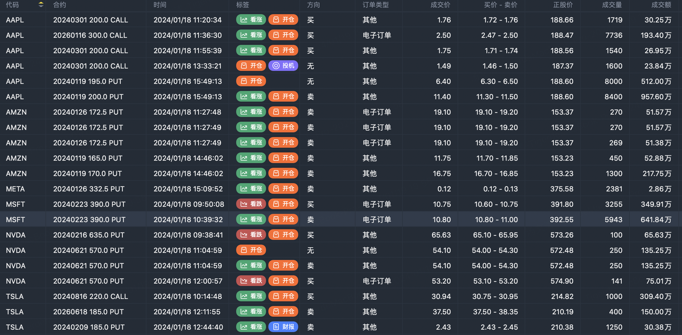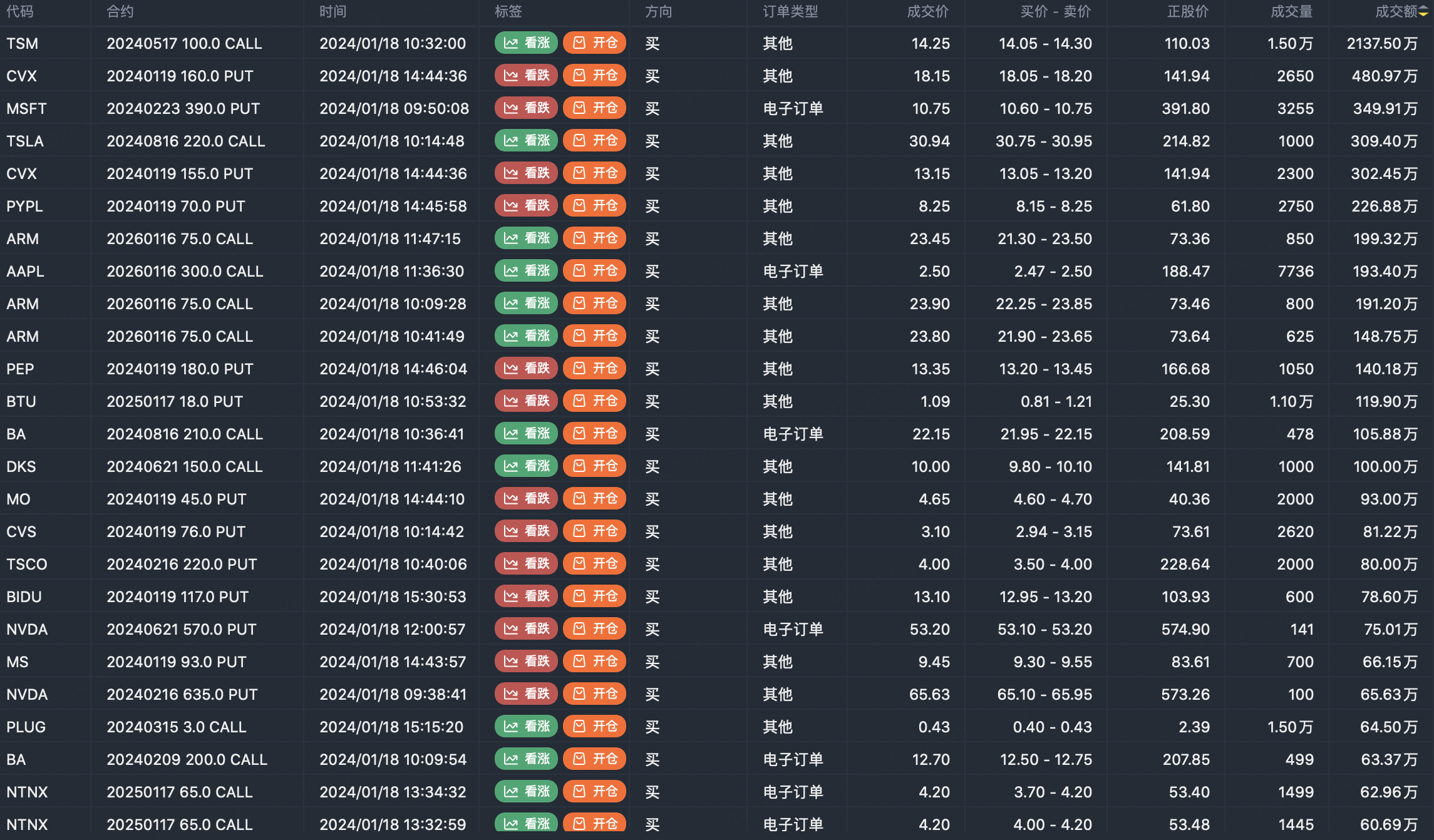 Note: This image data is from Tiger PC. This screen is a significant sell open position for an option contract in the market. A sell of a call option means that the trader believes that the underlying trend has peaked, and a sell of a put option means that the trader believes that the underlying trend has bottomed. These contract openings typically indicate significant activity in the underlying stock, including whether the trader is willing to accumulate a long or short option position.
