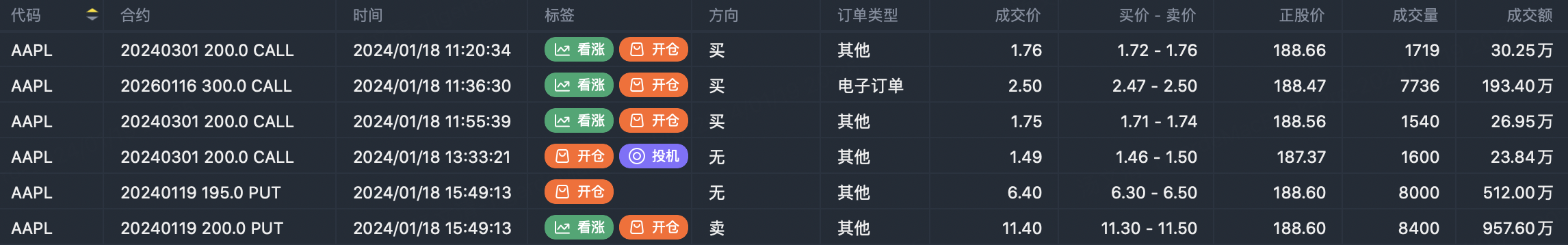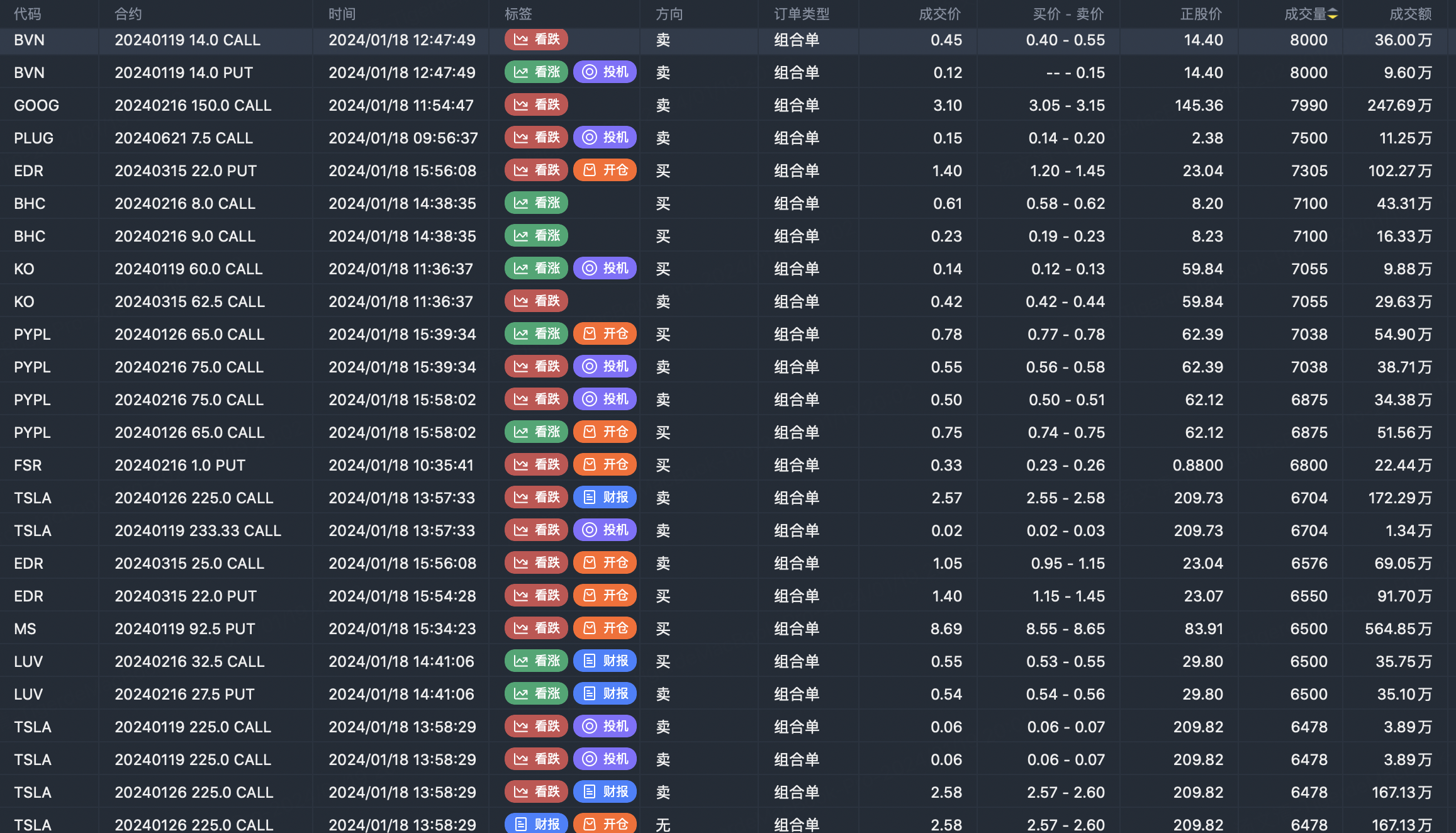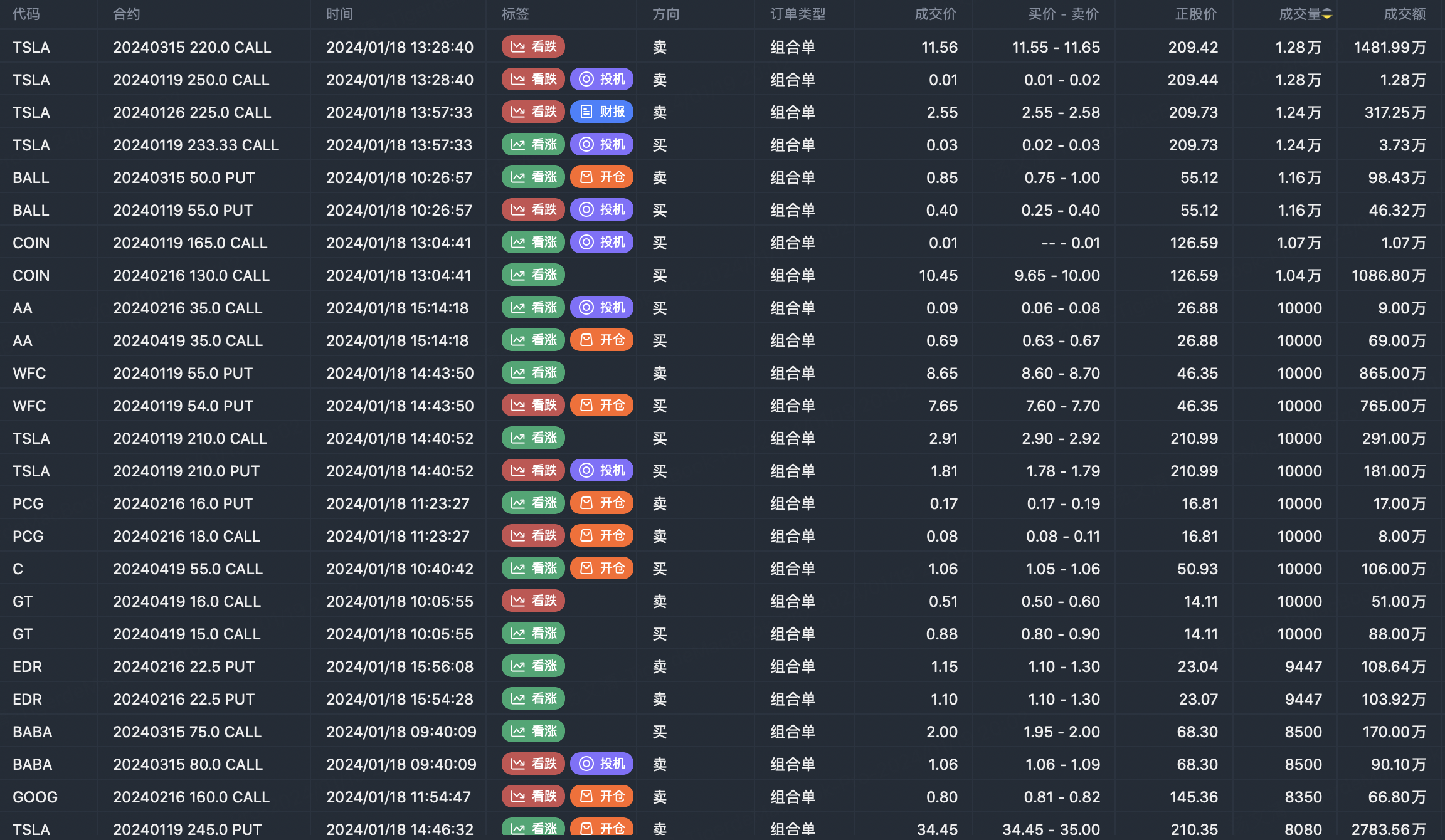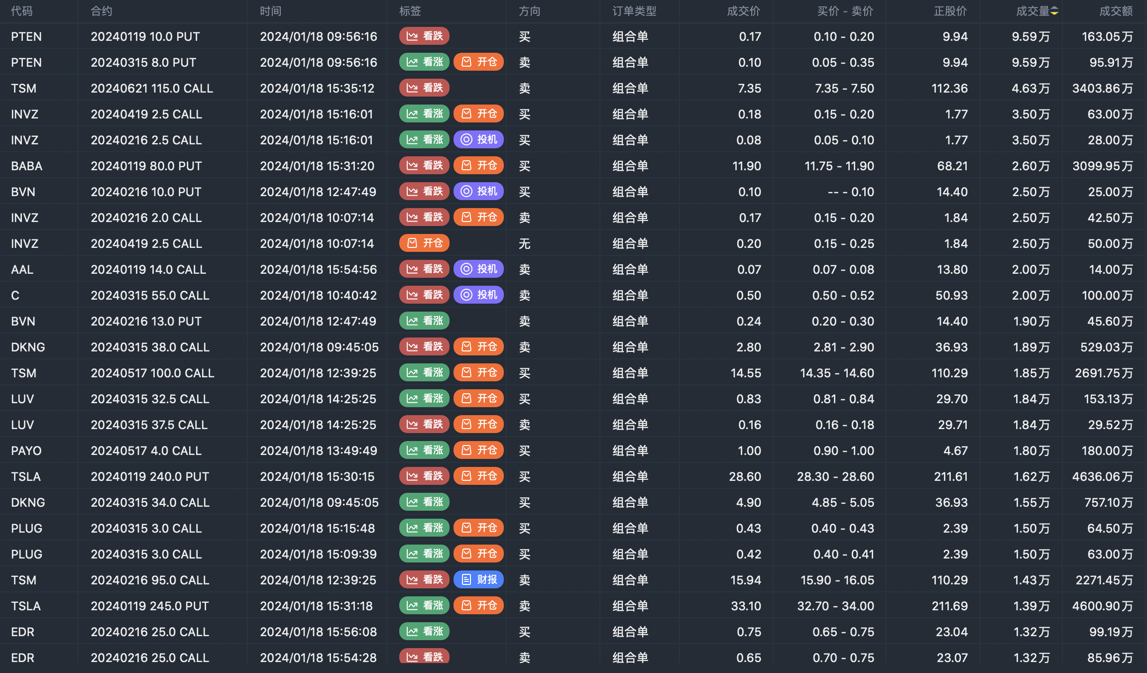Note: This image data is from Tiger PC. This screening is a significant portfolio of options contracts in the market. Portfolio opening includes a variety of underlying trends, requiring traders to further master the basic knowledge of options for analysis and judgment.