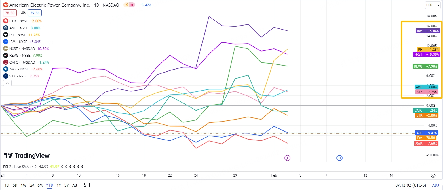 As of Feb 2nd, The return of YTD 2024 of each stocks are as below: