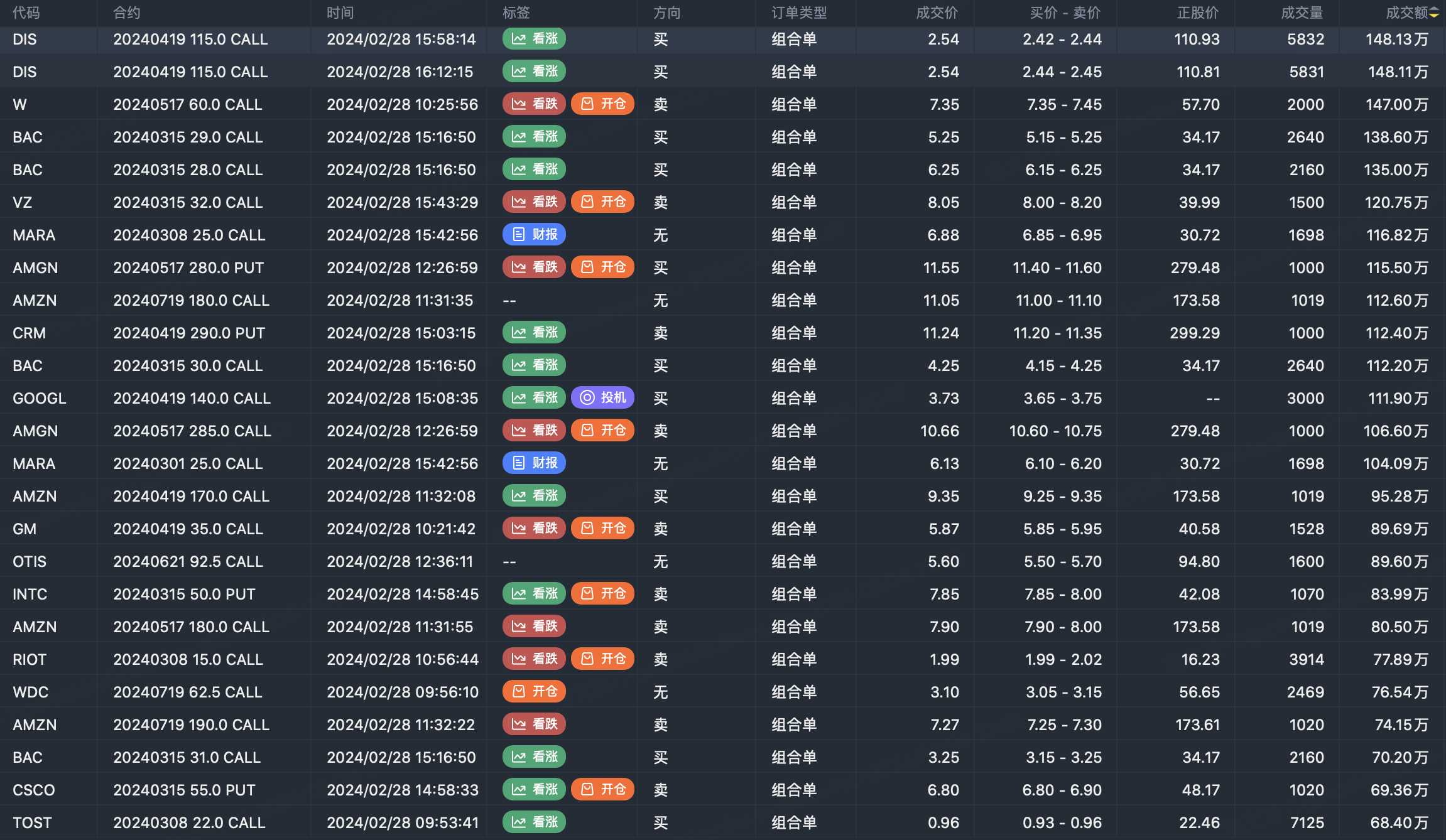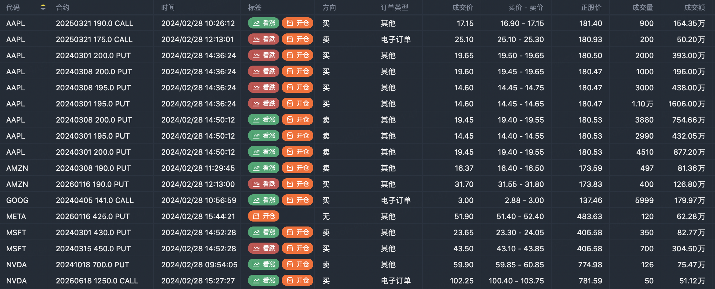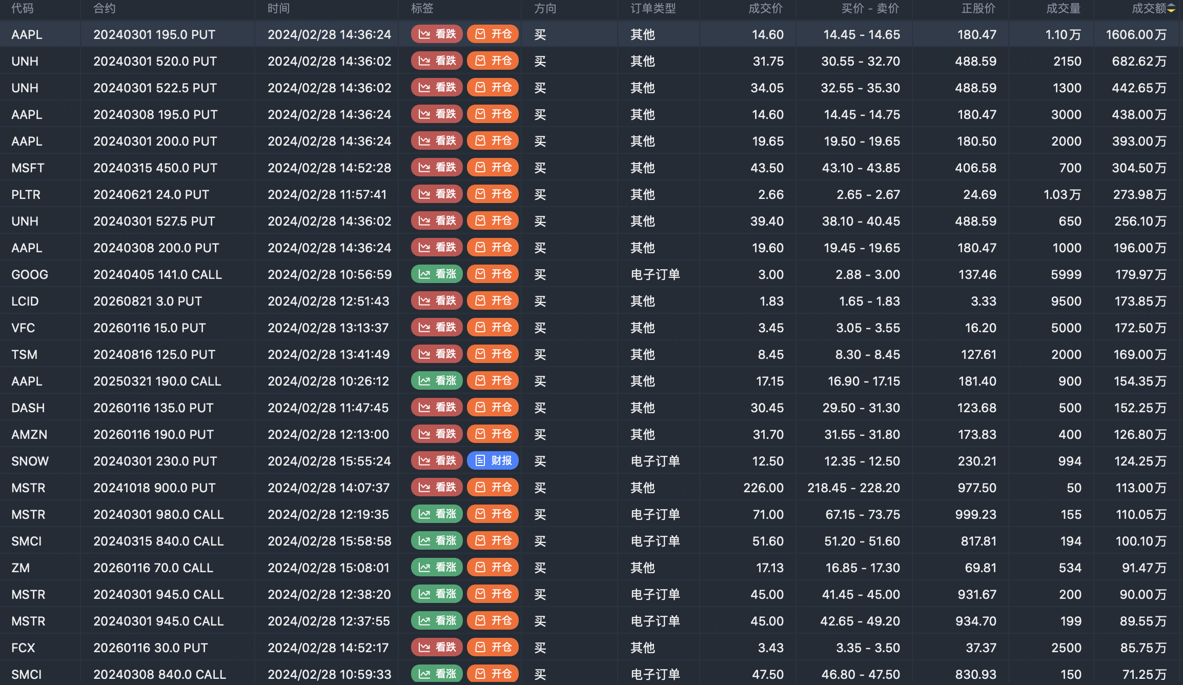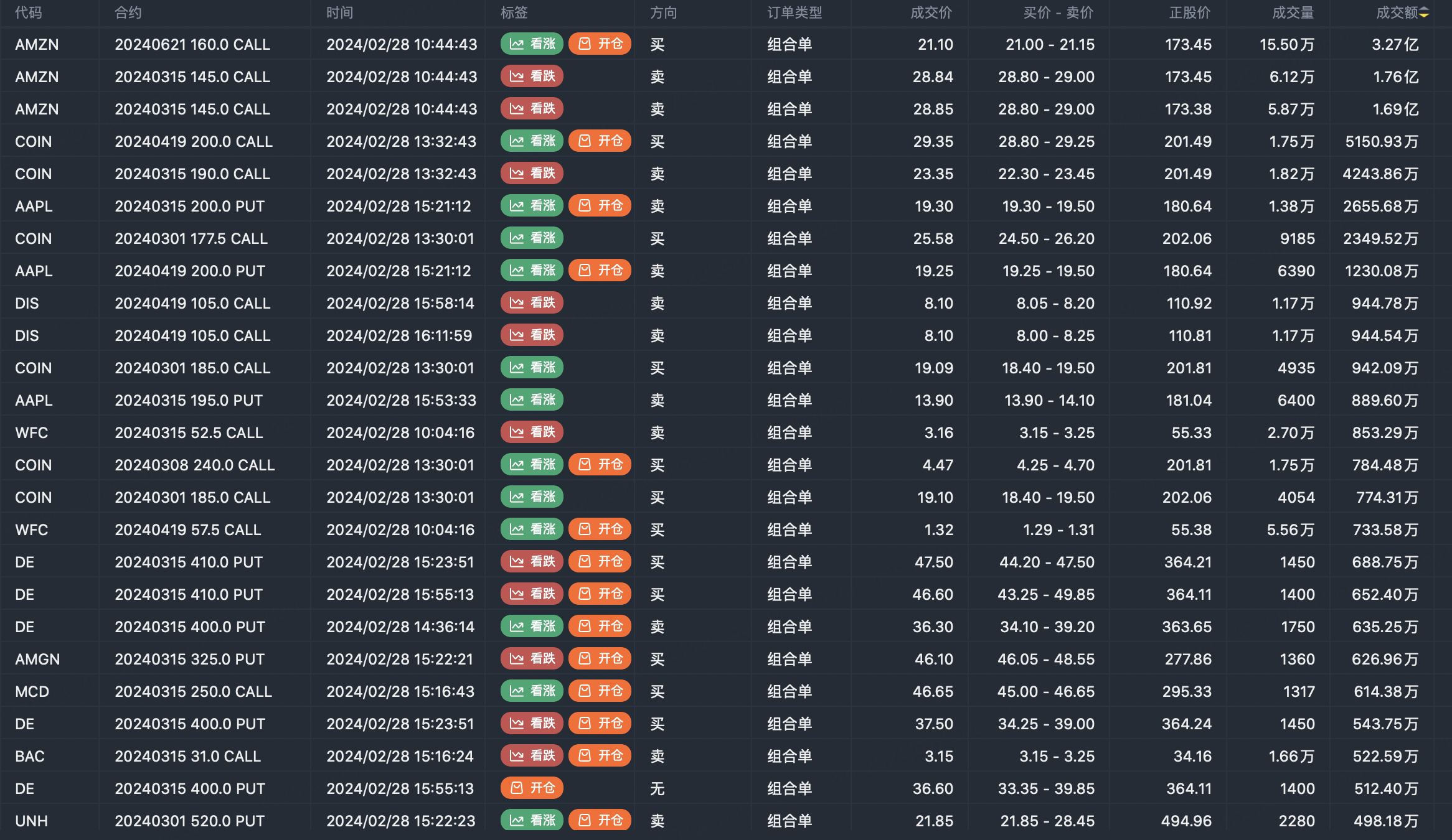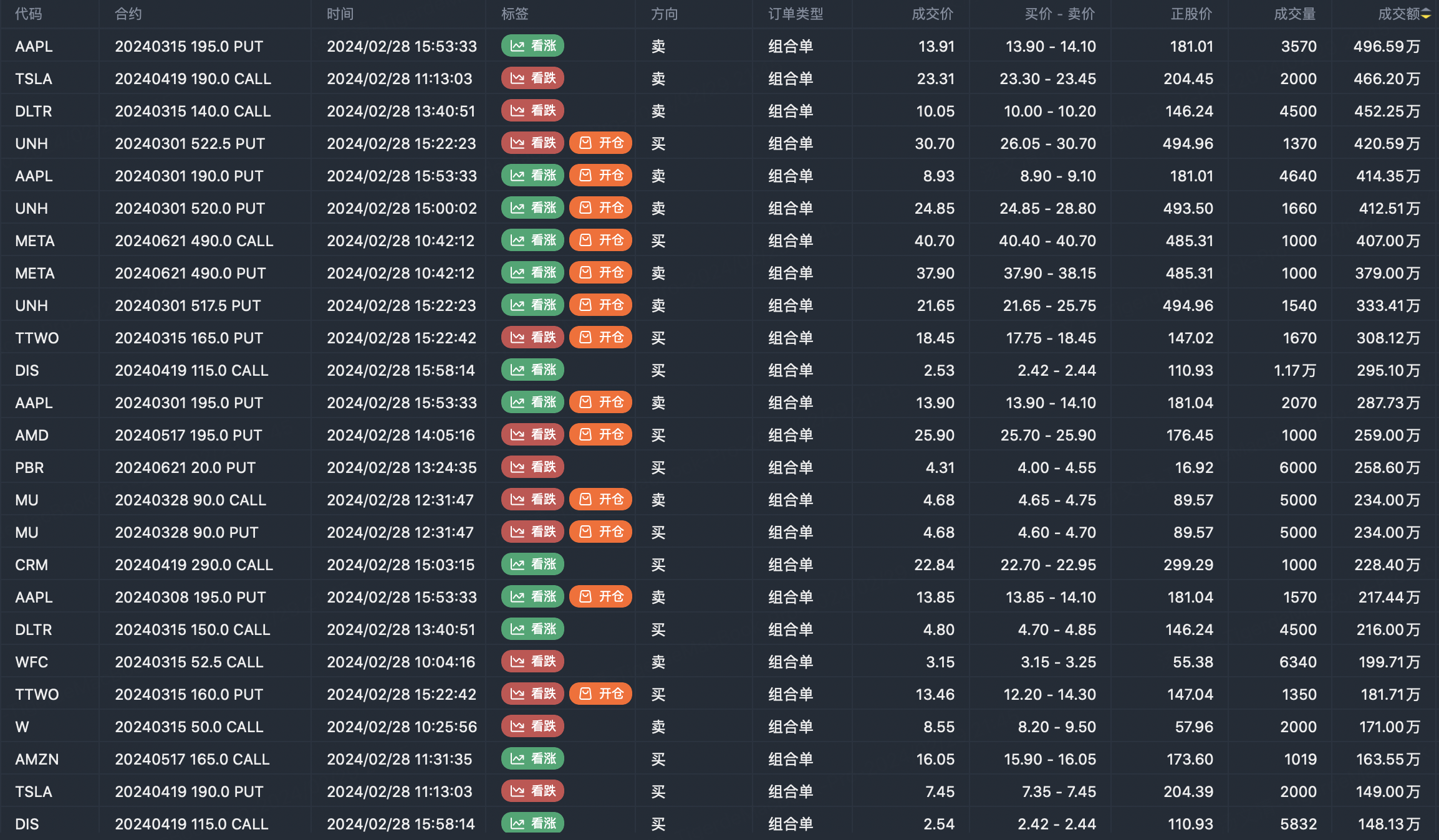 Note: This image data is from Tiger PC. This screening is a significant portfolio of options contracts in the market. Portfolio opening includes a variety of underlying trends, requiring traders to further master the basic knowledge of options for analysis and judgment.