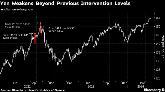 Over the past 30 years, the Japanese yen moved beyond USD/JPY 155 for the first time, potentially prompting Japan to intervene in the market.