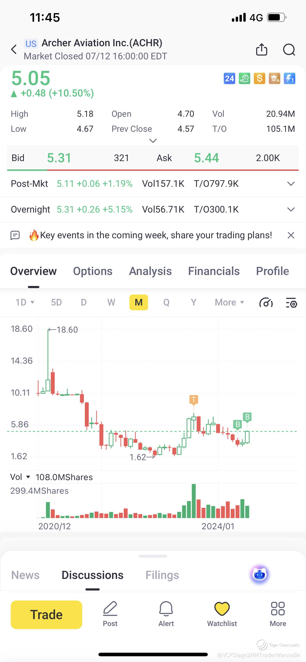 $Archer Aviation Inc.(ACHR)$ i m in the money but I am approaching with caution to add and in fact taking some profits along the way could be good idea. The monthly timeframe suggests that we are trading in the middle of distribution, despite the recent run up, it could well sell off again. Any thoughts pls share thank u!
