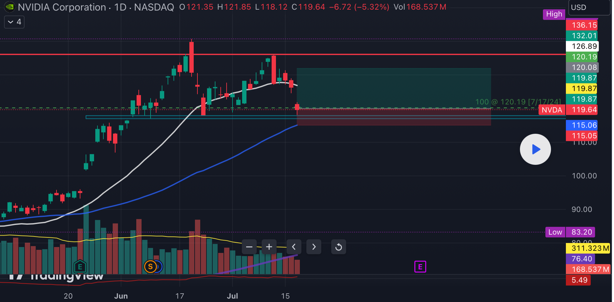Hoping for bounce at this multi-tested low. Tight stop, as confirmation of double-top formation could send the stock down to $105 levels.