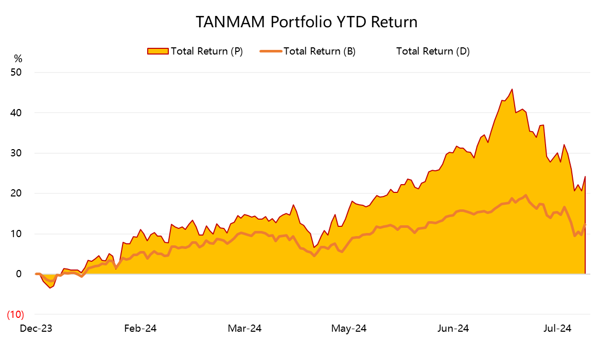With the broader market pullback this week, the portfolio has returned 24.18% year-to-date, outperforming the SPY's 12.35%.