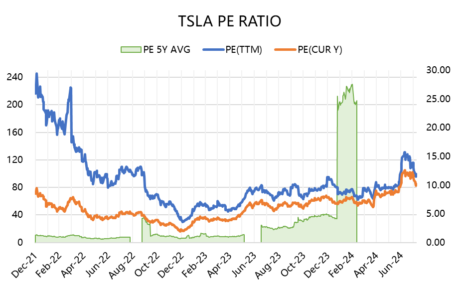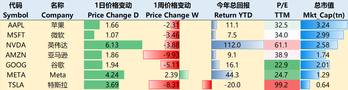 With the release of Big Tech's Q2 earnings, the market has largely completed its revaluation, as well as position adjustments.In terms of profit multiple valuations for Mag 7 as of the 8.8 closing price, the highest PE for the 12 consecutive months is TSLA at 99x and the lowest is GOOGL at 22x.