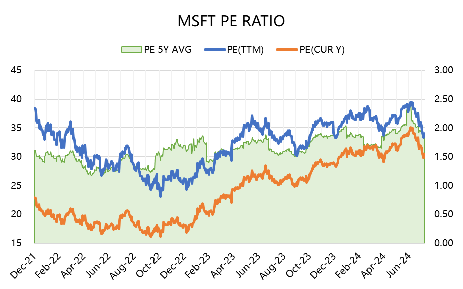 MSFT: PE (TTM) is 34.2x, and Forward PE projected at 2024 Consensus EPS is 30.4x, or an implied 12% upside; and as growth rate rises, PEG falls from 2.0x to 1.9x.Microsoft is still relatively stable.
