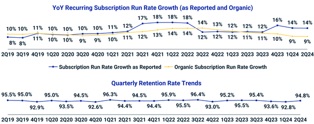 Most importantly, as can be seen below, the retention ratio quickly recovered to 94.8%, which is around its average retention ratio, after the metric fell to 92.8% in 1Q24.