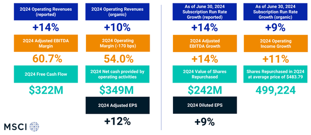 Given that 2Q24 results were encouraging, I am cautiously optimistic about the outlook for MSCI.