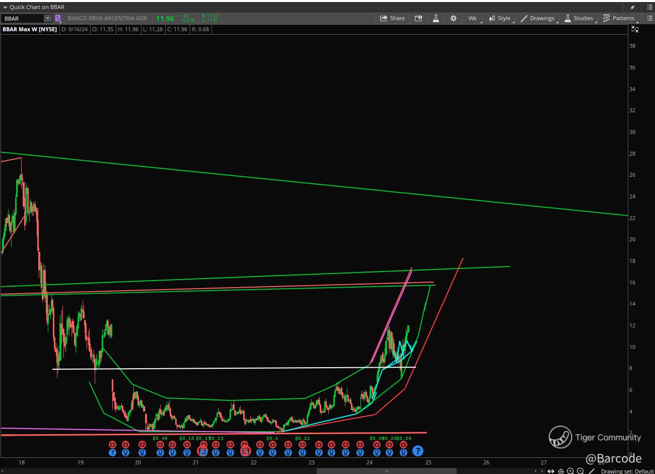 The chart is showing a ☕️cup-and-handle pattern, which is a classic 🅱️ullish setup that points towards a breakout. Once BBAR clears the $12.39 resistance, the target of 14.50-15.00 will be in clear sight. 🎯🚀