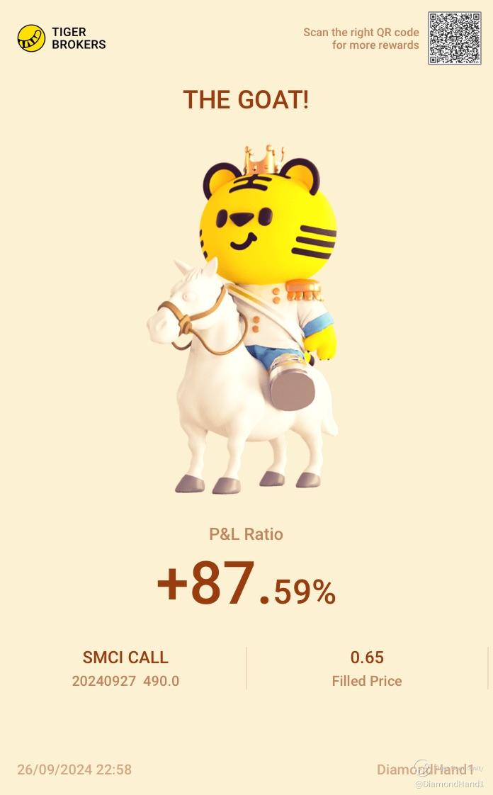 $SMCI 20240927 490.0 CALL$ Because of DOJ probe, stock crashed and hit my TP.. Might wait out on this due to class action lawsuit and DOJ probe. Next support level is around 360