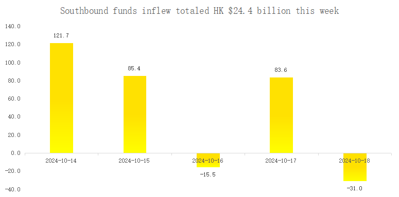Southbound funds saw a net inflow of HK$24.4 billion this week.