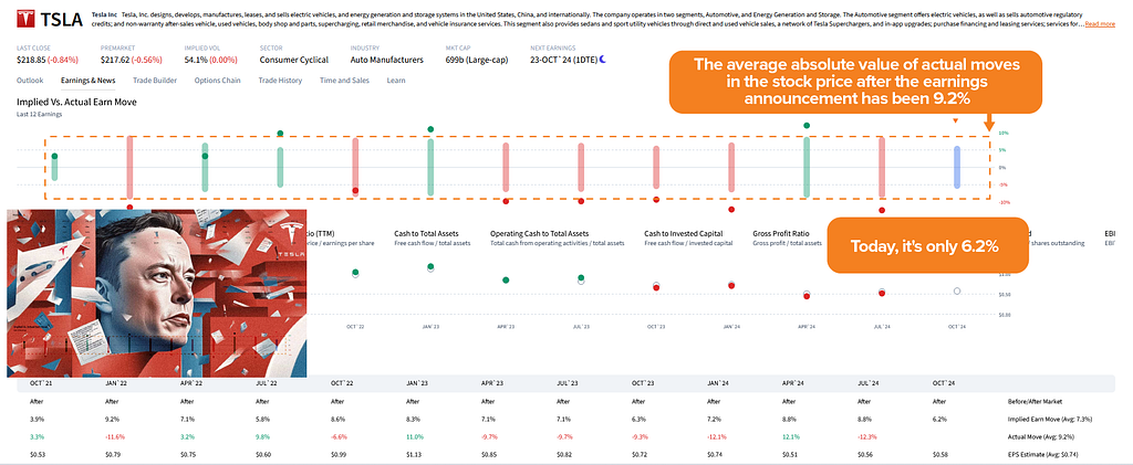 With earnings dropping after the bell on October 22nd, the question remains: Will Tesla maintain this pattern of bigger-than-expected post-earnings movements, or is the market accurately predicting a more subdued response this time? Political headwinds and Tesla’s ongoing evolution from a niche electric vehicle manufacturer to a broader technology and energy company may lead to more tempered reactions in the stock. However, with a company as unpredictable as Tesla — and a founder as polarizing as Musk — one thing remains certain: volatility is never far away.