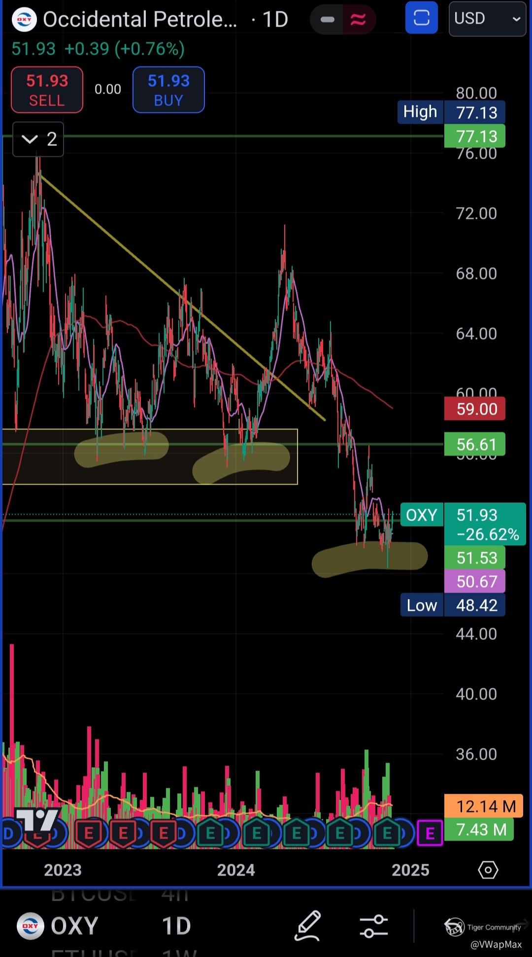 $Occidental(OXY)$ multiple bottoms seen on $OXY in the past these has led to an increase in its price