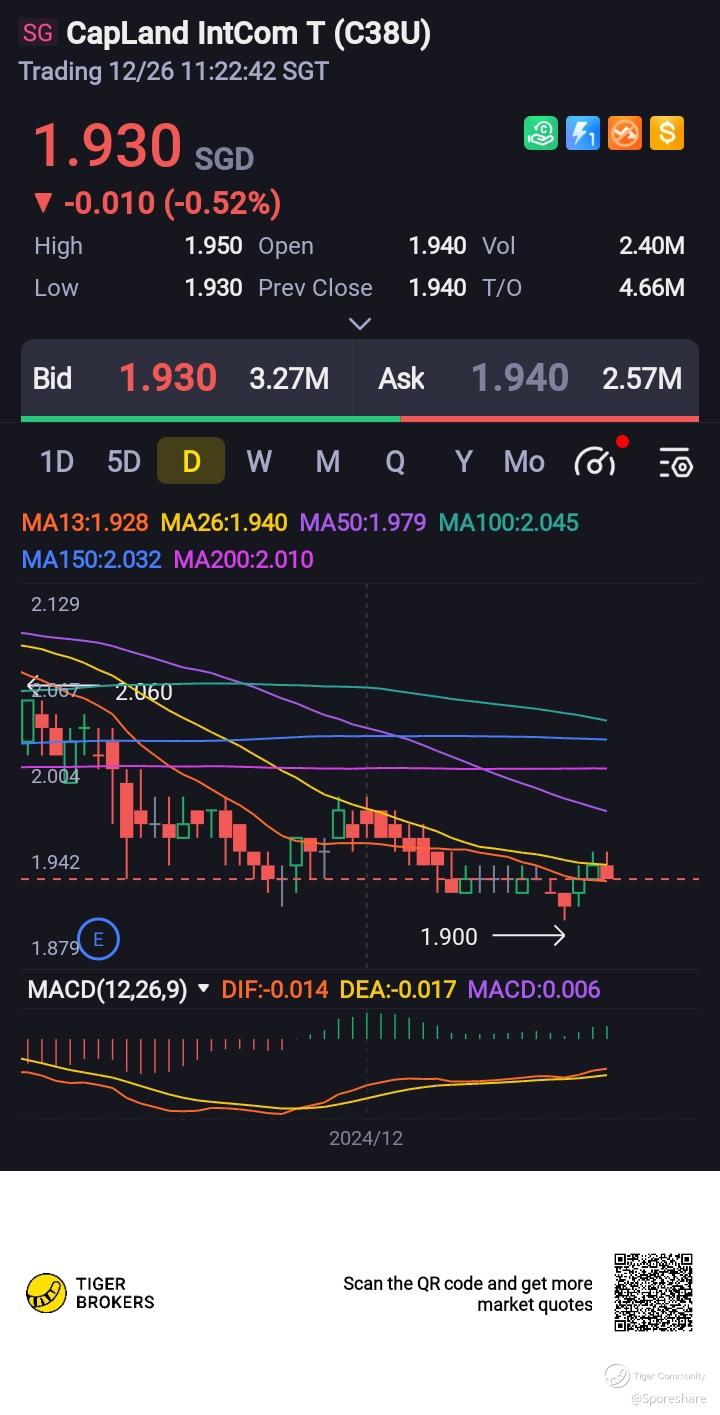 CapLand IntCom Tr (C38U.SI) - I think boat is back! At 1.93, yield is about 5.6 percent which is pretty good yield level!