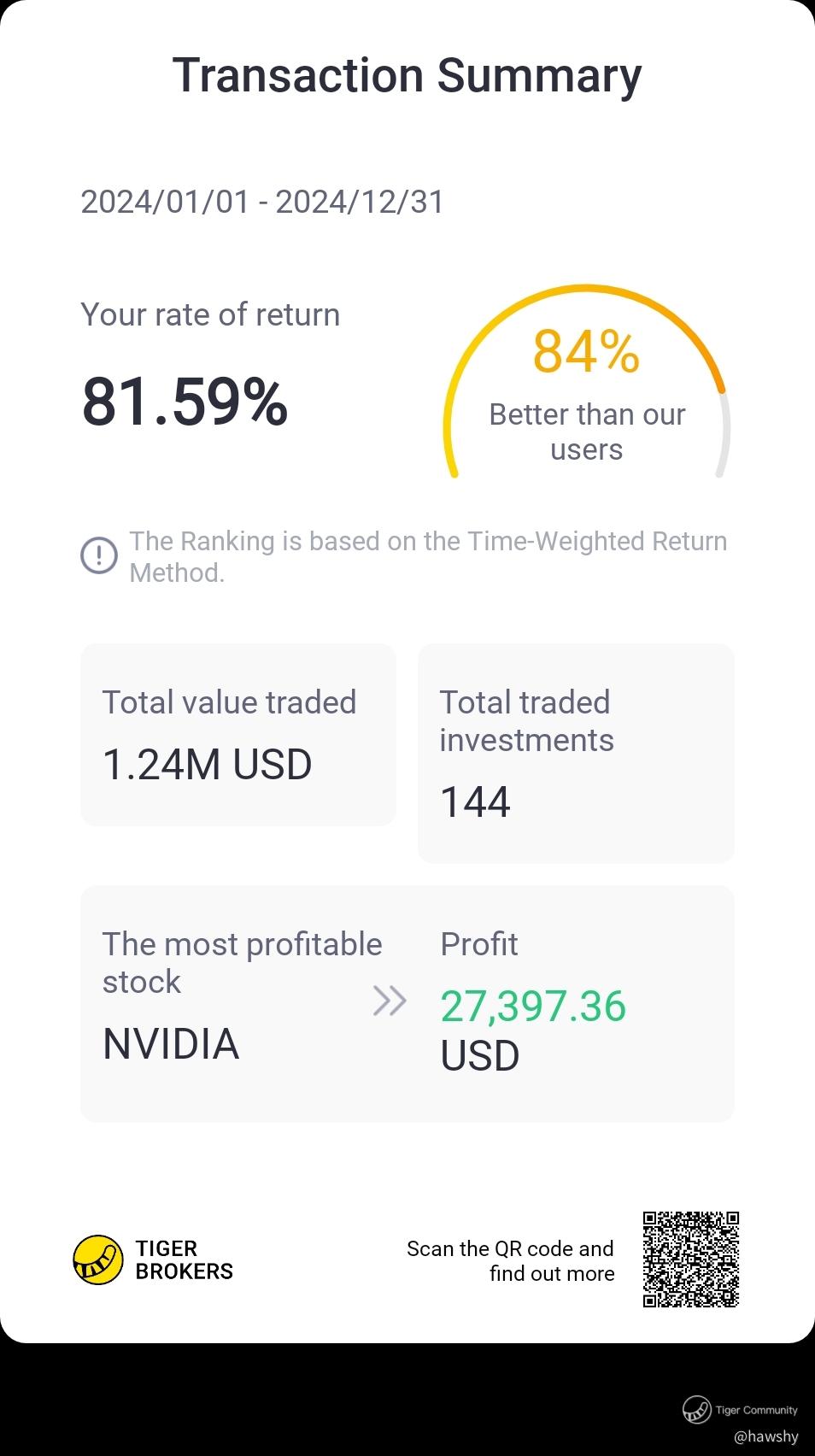 My YTD annual return is 81.59% - what a great year to close! Happy New Year to everyone!! ππ