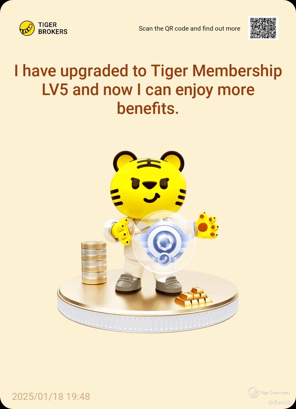 🎉 Big news, everyone! I've just hit a fantastic milestone with @TigerBrokers. I've upgraded to Tiger Membership LV5! 🐅💼