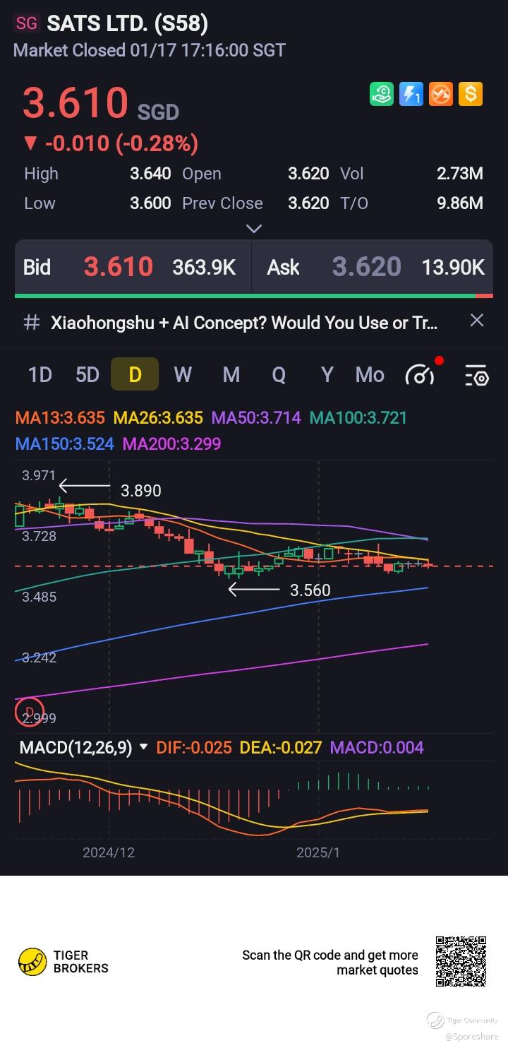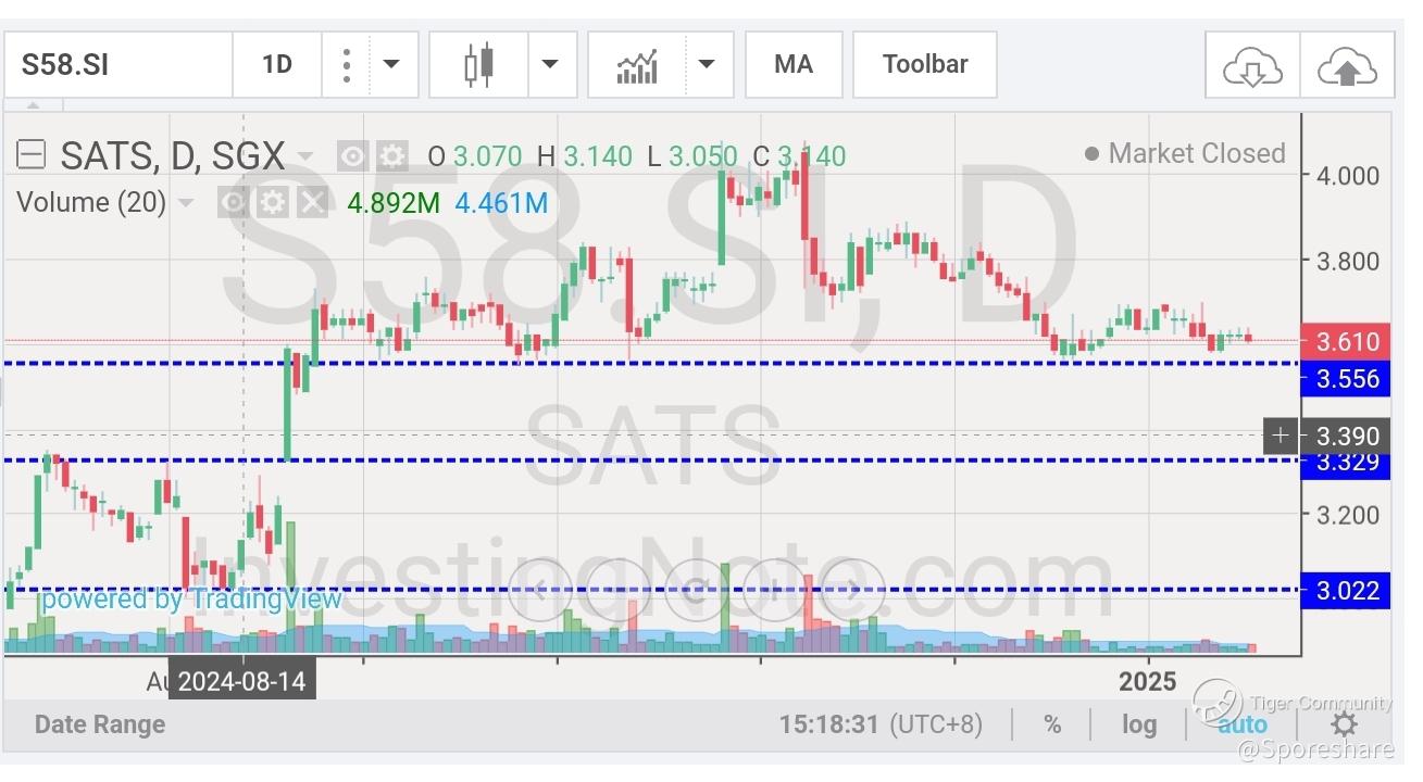 SATS - Chart wise, bearish mode. If 3.56 cannot hold then she may go down to test 3.33!