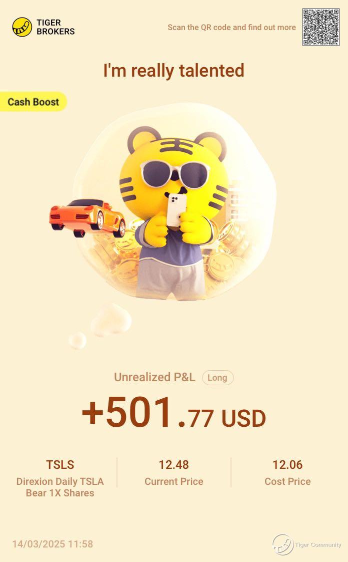 $Direxion Daily TSLA Bear 1X Shares(TSLS)$ It’s almost predictable—Musk is heading for a crash! Shorting $Tesla Motors(TSLA)$ and taking a slice from the world’s richest man. When the market gives you an opportunity, you grab it!