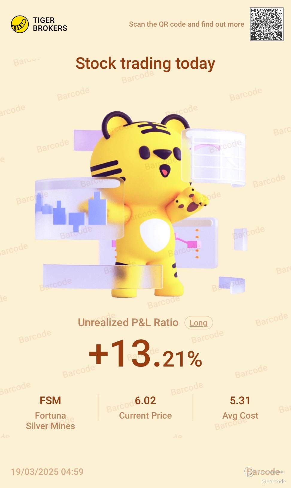 Iβm still holding FSM long, up +13.21%, with an average cost of 5.31 and a current price of 6.02.