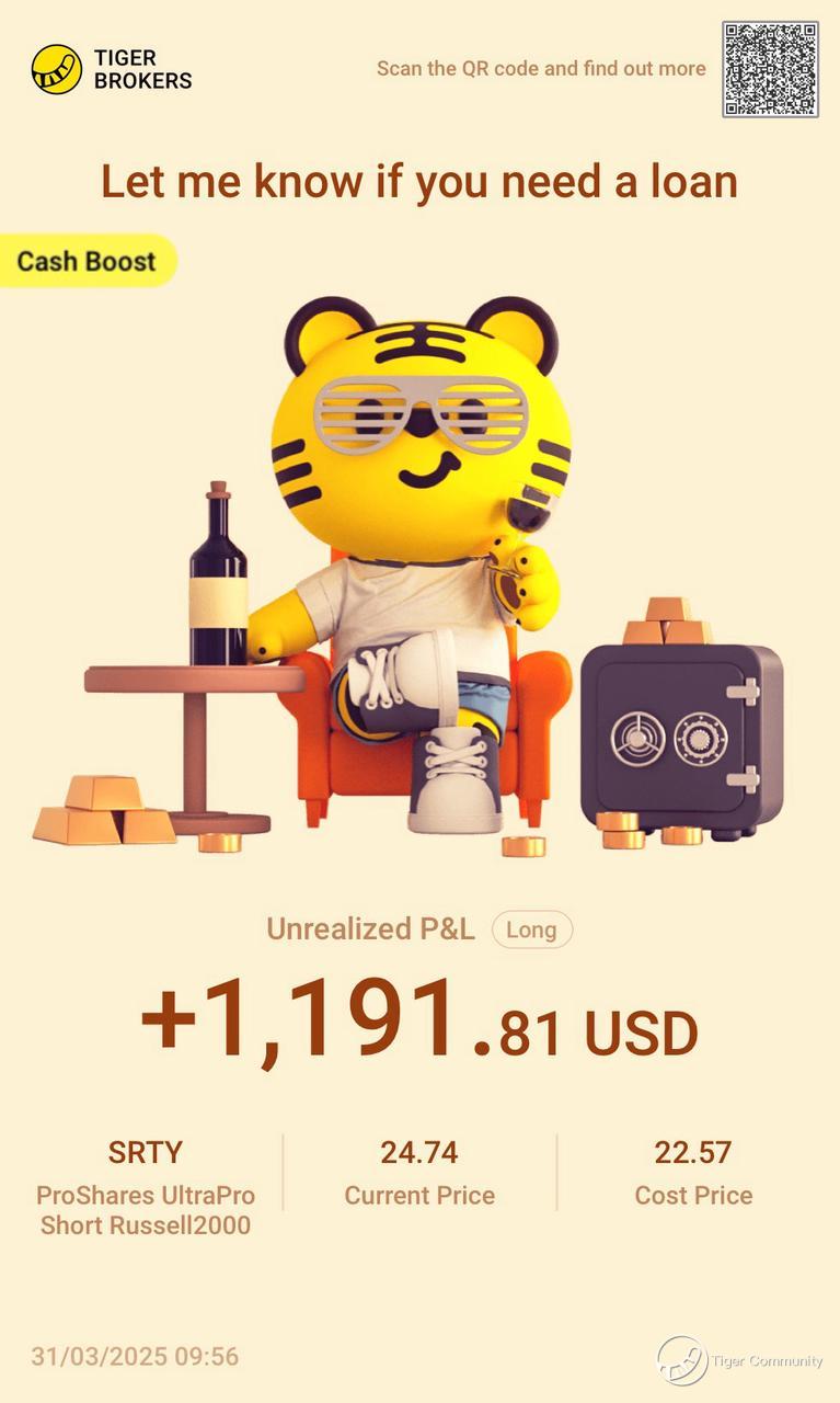 $ProShares UltraPro Short Russell2000(SRTY)$ When facing market fluctuations, choosing the right hedging strategy is crucial. This recent move has brought me great returns, especially during a market downturn. By implementing smart hedging strategies to mitigate risks, the profits have been quite satisfying.