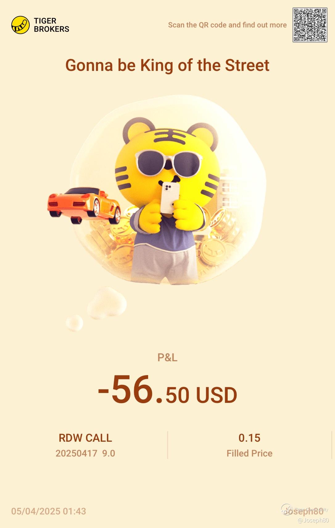 $RDW 20250417 9.0 CALL$ should close the position when it is in green, too greedy.