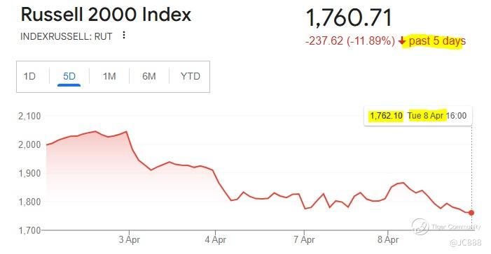 The Russell 2000 index has also fallen by -11.89%, based on past 5 trading days. (see above)