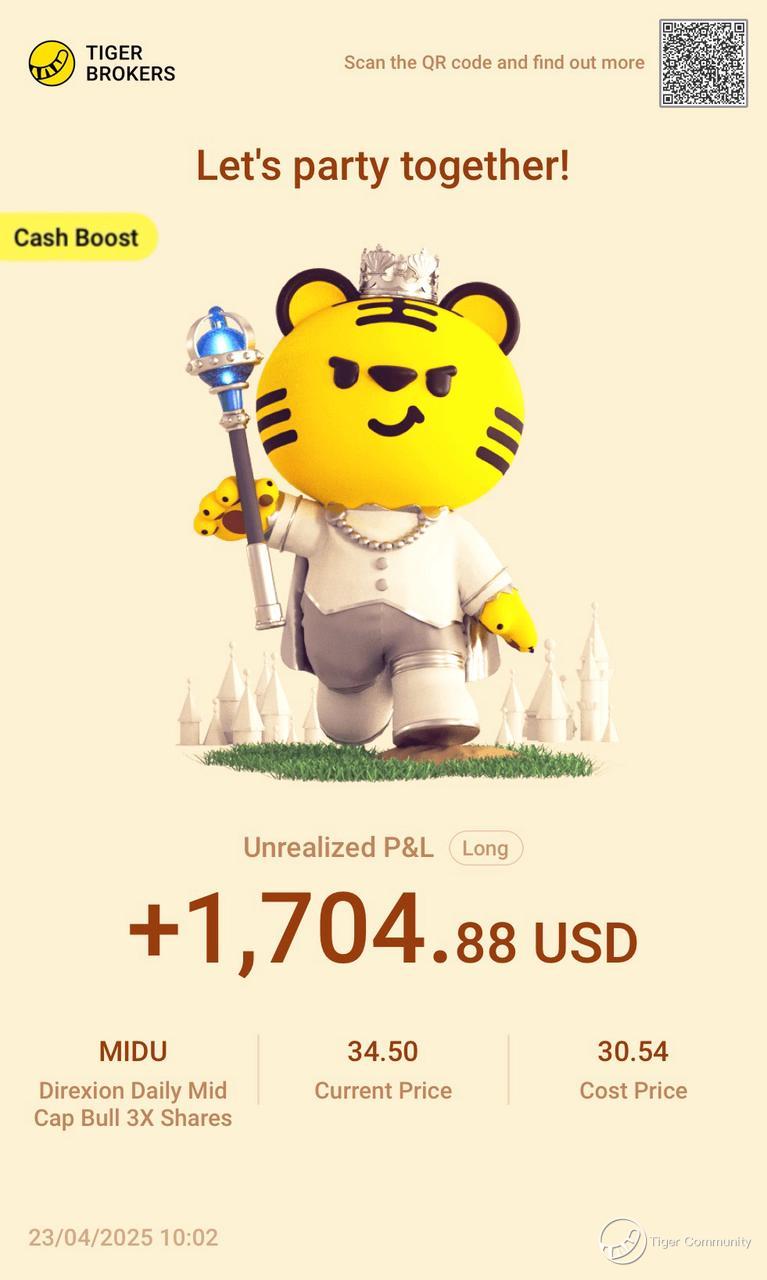 $Direxion Daily Mid Cap Bull 3X Shares(MIDU)$ I admire my own operation. In the stock market, you have to keep a close eye on the market and act decisively when there is an opportunity. Now, the money is in your pocket.
