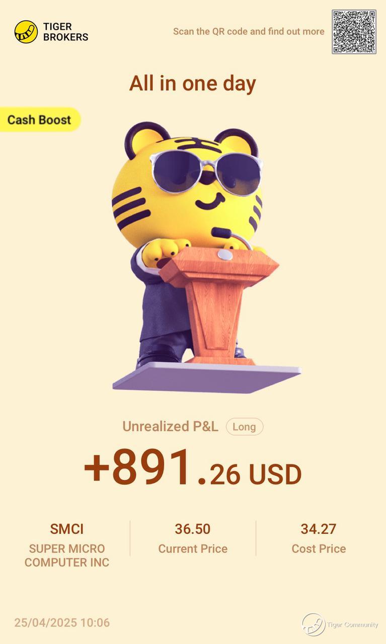 $SUPER MICRO COMPUTER INC(SMCI)$ just feels amazing to hold,no stress, no second-guessing. It shakes a bit, sure, but always bounces back even stronger. It’s like one of those stocks you didn’t think too much of at first, but the more you hold, the more you love it. While the market’s all over the place, this one just keeps delivering. Honestly, feels like I’m on the right train, and trust me,I’m not getting off anytime soon.
