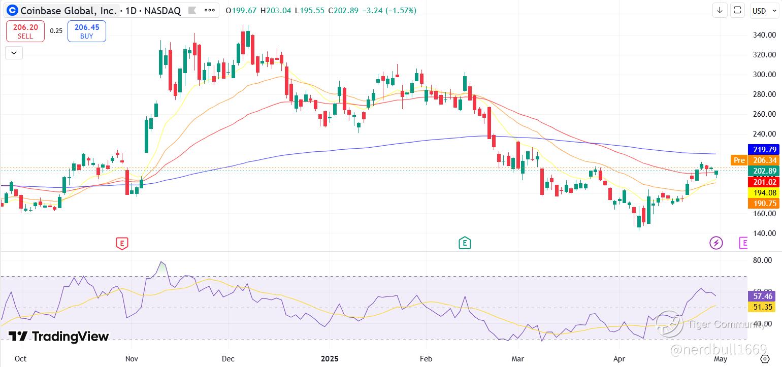 - Valerie Archibald·05-02COIN dropped from the high of the day ($210) to $201. looking at the 1-year chart, it seems like this could be a good time to buy?LikeReport