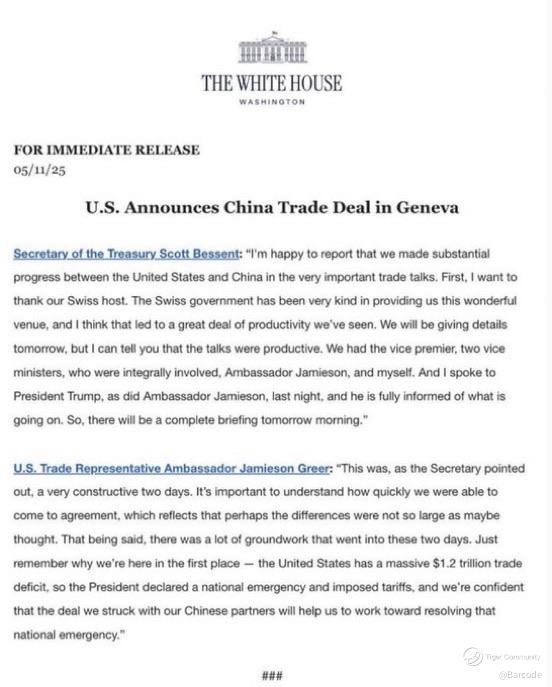 A new trade framework between the U.S. and 🇨🇳 China has now been confirmed by the White House. After months of friction, structural dialogue in Geneva resulted in what Treasury Secretary Bessent called “substantial progress.” For the market, that phrase isn’t political. It’s directional.