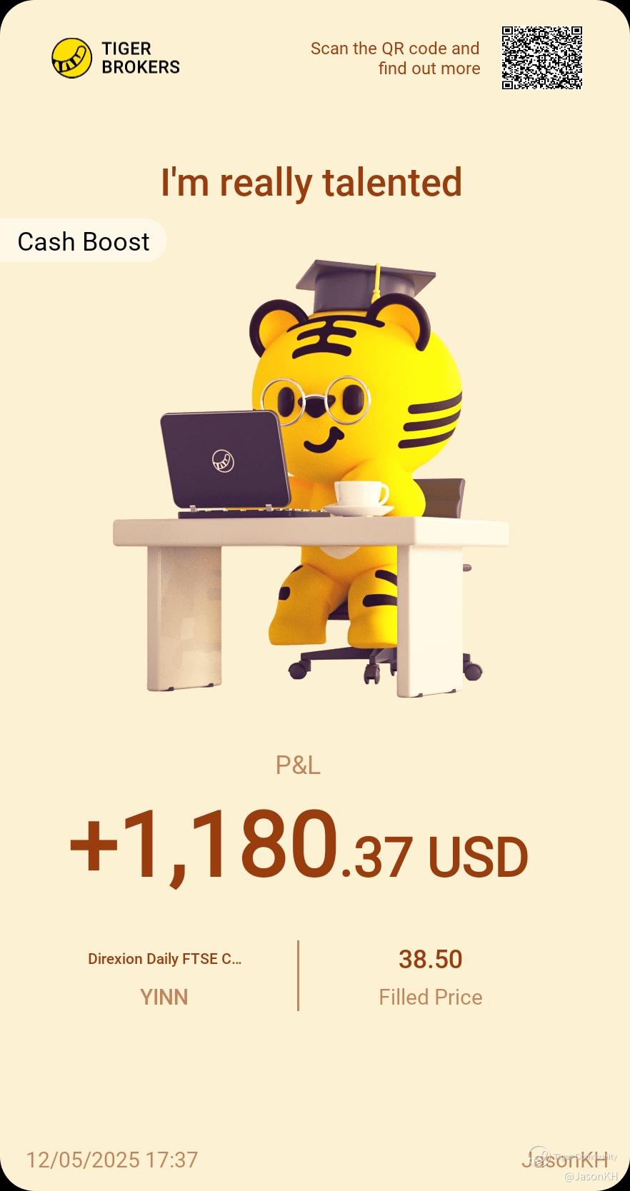 $Direxion Daily FTSE China Bull 3X Shares(YINN)$ Thanks to Cash Boost Account. Ride on the trend 🚀