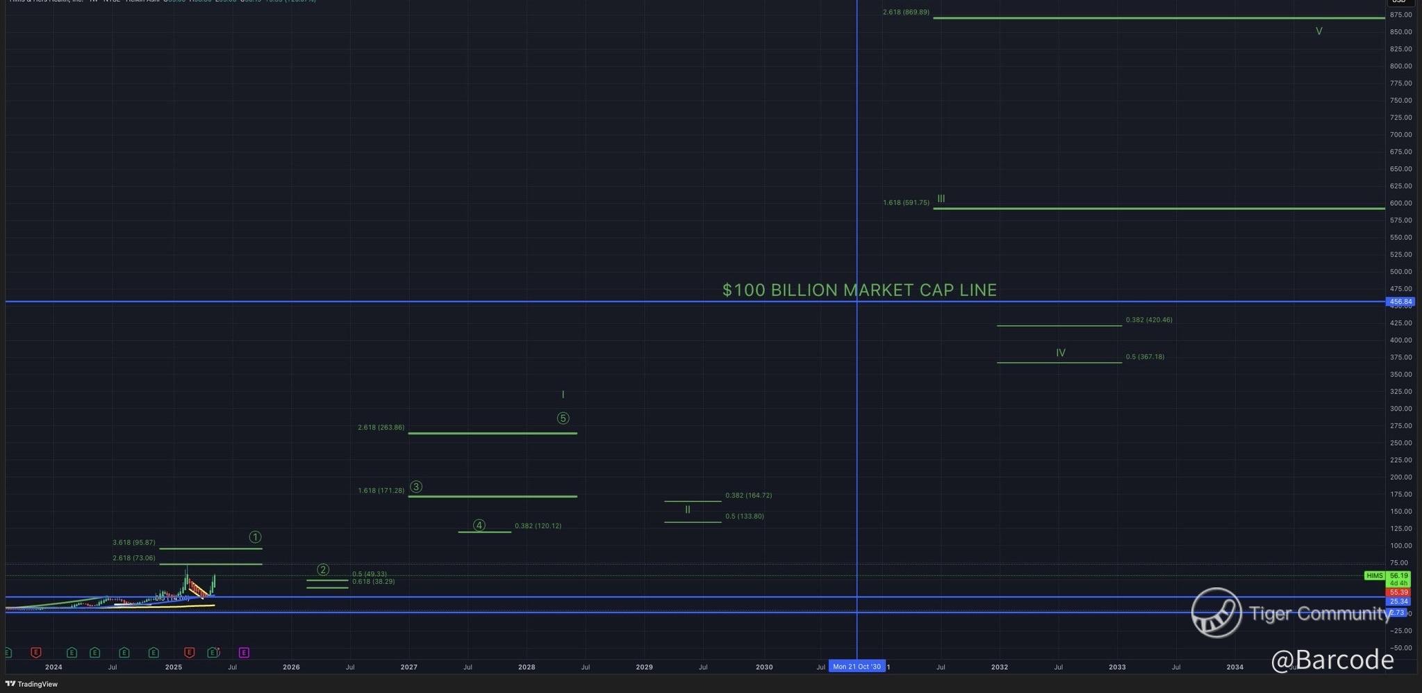 This isn’t moon math. It’s disciplined Fibonacci extensions supported by platform economics.
