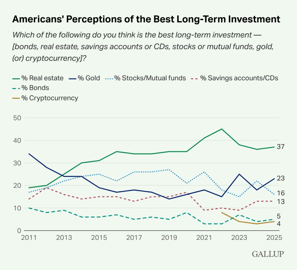 Mining.com reports: “Gold $Barrick Gold Corp(GOLD)$ has surpassed equities as the second most popular long-term investment choice amongst Americans, according to the latest poll by Gallup“