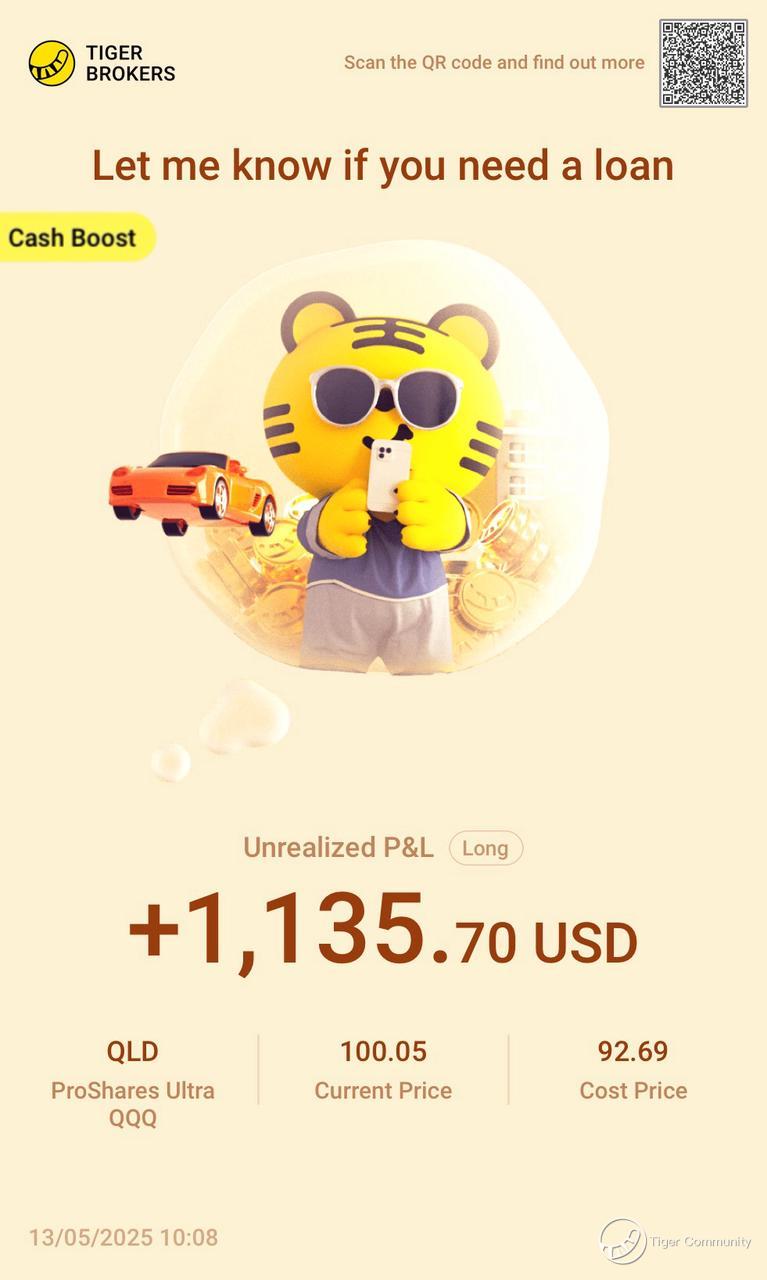 $ProShares Ultra QQQ(QLD)$ Last night, all three major U.S. indices saw a big jump, marking the biggest gain since April 9! The $NASDAQ(.IXIC)$ rose 4.35%, bouncing more than 26% from its recent low, back into bull market territory. The unexpected talks between China and the U.S. have really boosted market confidence, easing concerns about an economic recession and significantly lowering expectations of Fed rate cuts. Feels like this rally might be just the start, I feel that this wave of market sentiment has been swept away. excited to see where it goes from here!