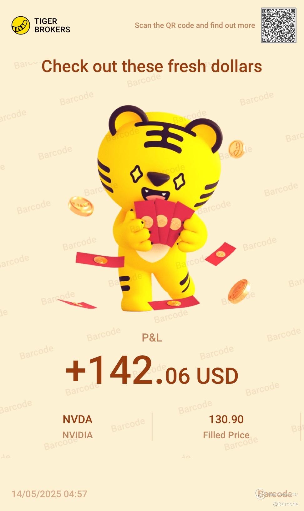 ๐ $NVDA: +$142.06 USD, filled at $130.90