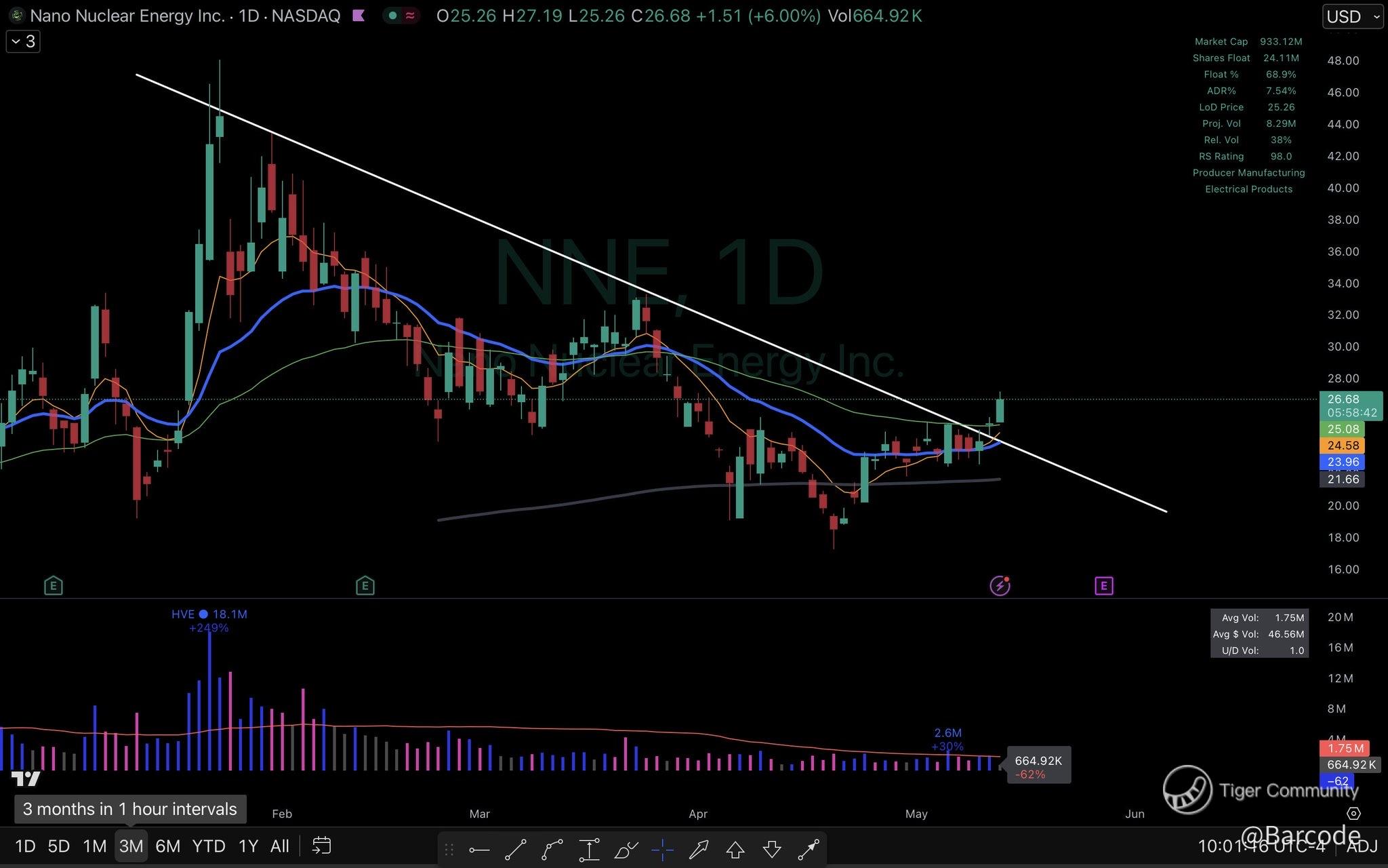 This isn’t a drill, Nano Nuclear Energy ($NNE) just completed a high-volume breakout of its multi-month downtrend, catapulting through resistance like one of its future orbital reactors. With conviction in the chart, validation in the fundamentals, and momentum in the news cycle, this is one of the most electrified setups on my radar right now!
