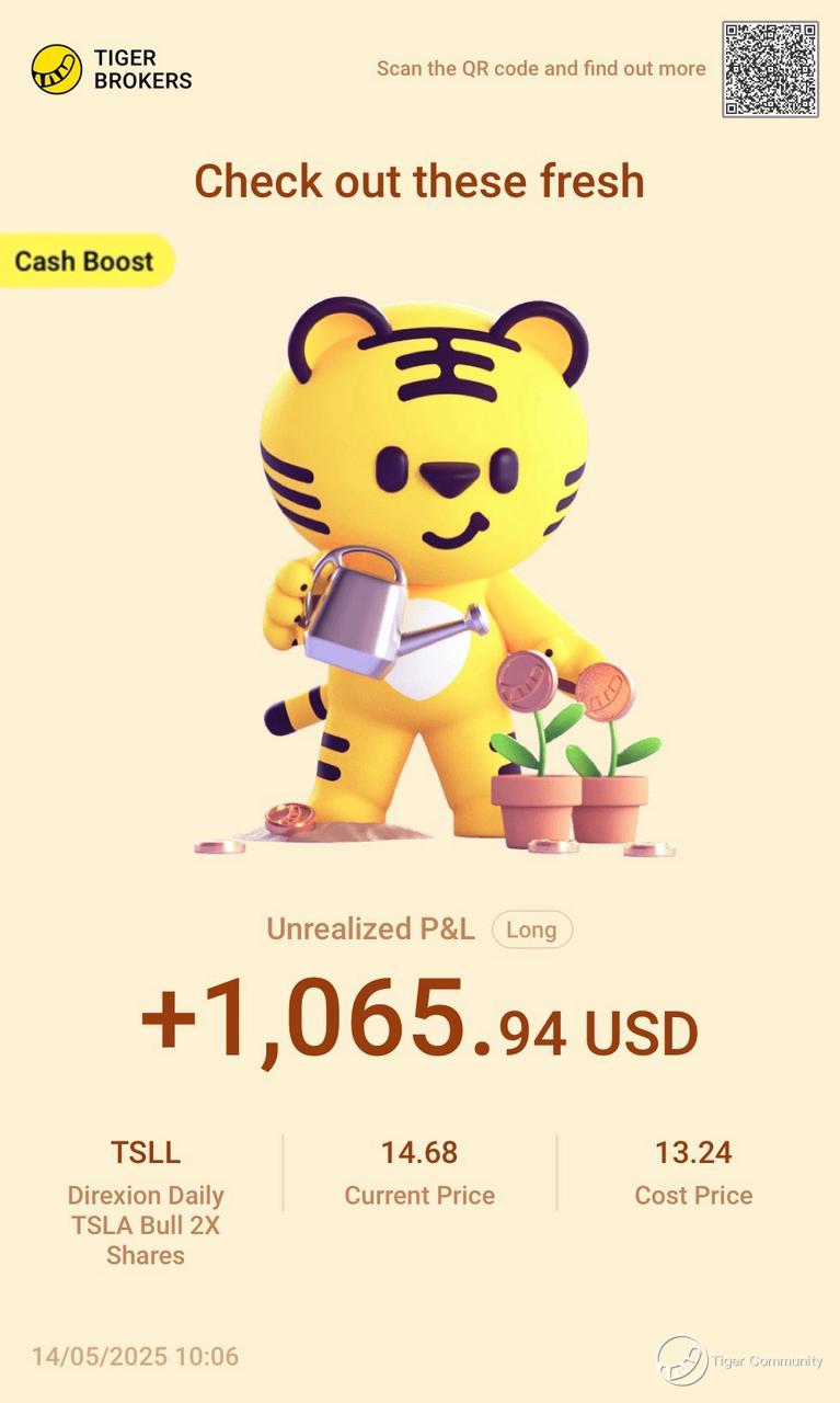 $Direxion Daily TSLA Bull 2X Shares(TSLL)$ Been holding $Tesla Motors(TSLA)$ since early 2019, finally seeing the light at the end of the tunnel! Been heavy on both the stock and TSLL, and today feels like a win. Gotta say, TSLA moves great, but it really eats up options… TSLL actually feels like the safer bet now.