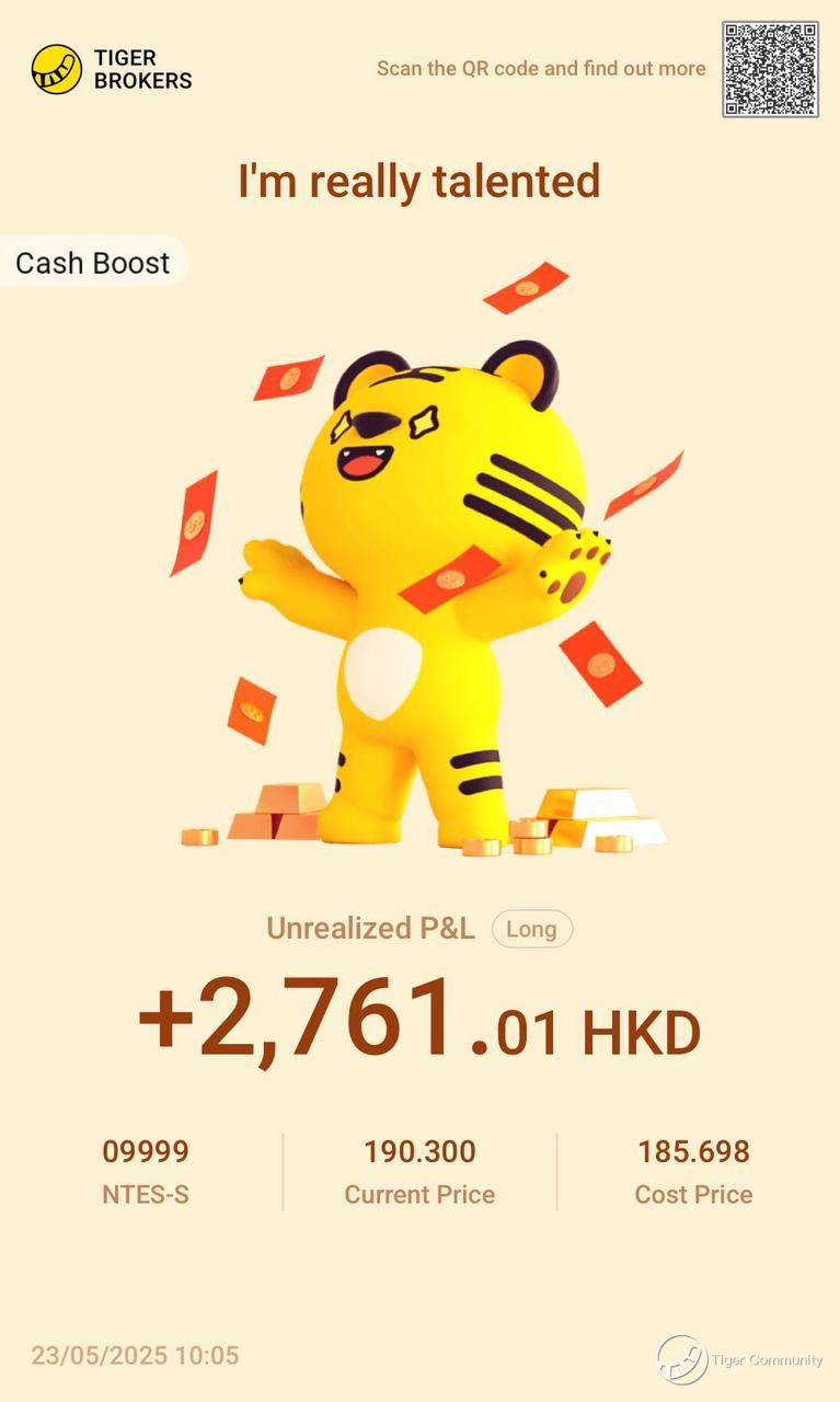$NTES-S(09999)$ ’s mobile game Justice Online just hit 20 million daily active users! Game revenue up 18% YoY in Q1,momentum’s clearly picking up. With new titles launching and consumer electronics entering peak season, the consumption sector is showing surprising strength. NTES holding steady like a champ,classic powerhouse. I'm holding tight, no shaky hands here!