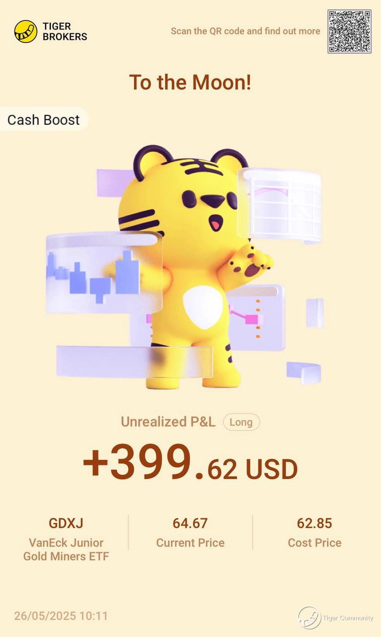 $VanEck Junior Gold Miners ETF(GDXJ)$ focuses on small-cap gold miners,those exploration or early-stage producers with big upside potential when gold prices rally. It holds around 90 stocks from around the world, including names like $Harmony Gold Mining(HMY)$ , $Evolution Mining Ltd.(EVMNY)$ , and $Alamos(AGI)$ . This global diversification helps spread out company-specific risk. As of May 23, 2025, it's already up 51.39% year-to-date. That’s some serious performance. I’m holding tight,this ride’s just getting started!