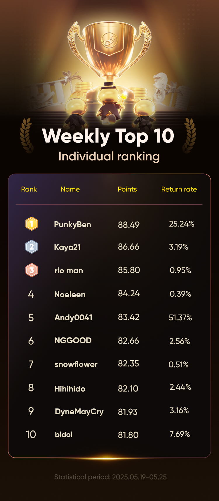 🚀 May 19 —— May 23 Leaderboard: Top Traders & Market Highlights!