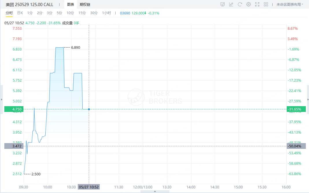 We start withMeituan 250529 125 CALL(Call option with an expiration date of May 29 and an exercise price of HK $125) as an example: