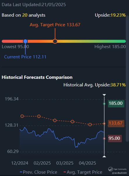 Based on 20 analysts from Tiger Brokers offering 12 month price targets for Dell Technologies in the last 3 months. The average price target is $133.67 with a high forecast of $185.00 and a low forecast of $95.00. The average price target represents a 19.23% change from the last price of $112.11.
