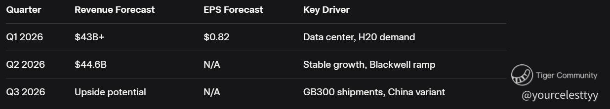 Nvidia’s Q1 2026 revenue is forecasted to hit around $43 billion, slightly above management’s guidance, driven by unrelenting demand for AI chips Bloomberg. The data center segment, which raked in $35.6 billion in Q4 2025 (up 93% year-over-year), remains the growth engine, fueled by H100 and H20 GPUs NVIDIA Newsroom. Analysts expect an EPS of $0.82, a 41.4% jump from $0.58 a year ago, reflecting Nvidia’s profitability prowess Nasdaq.