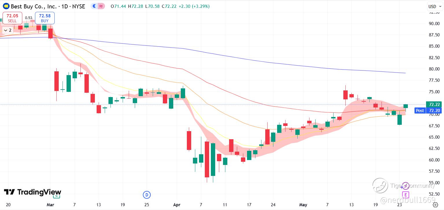 $Best Buy(BBY)$ is scheduled to release its Q1 Fiscal Year 2026 earnings on 29 May 2025, before the market open.