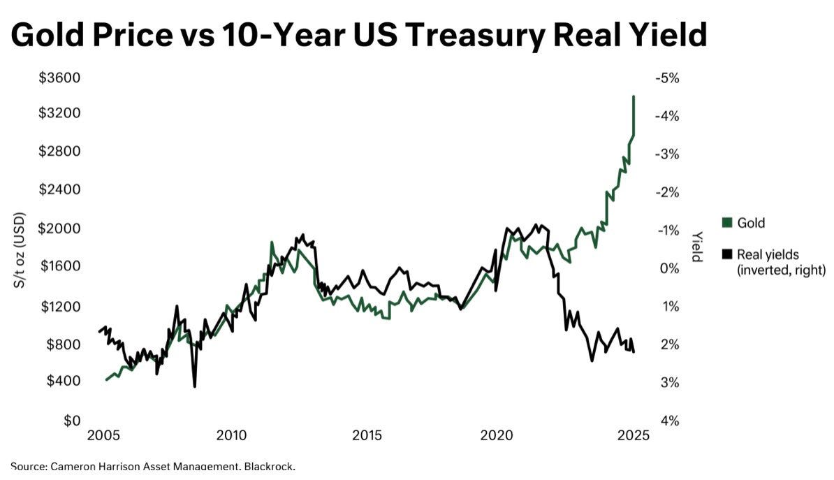 Some might call this chart broken or failed, but in my experience sometimes the most interesting relationships in charts are the ones that stop working, because they are telling you something has changed. And something did change in a massive way in 2022 — basically geopolitical risk demand for gold was ignited and that fire continues to blaze.
