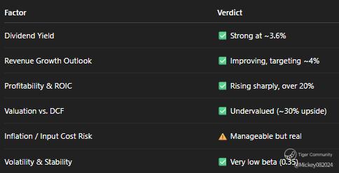 Importantly, the stock doesn’t appear to be priced for high growth. Investors are paying for what the company is: a slow-growing, cash-generating, defensive business — not a high-octane growth engine.