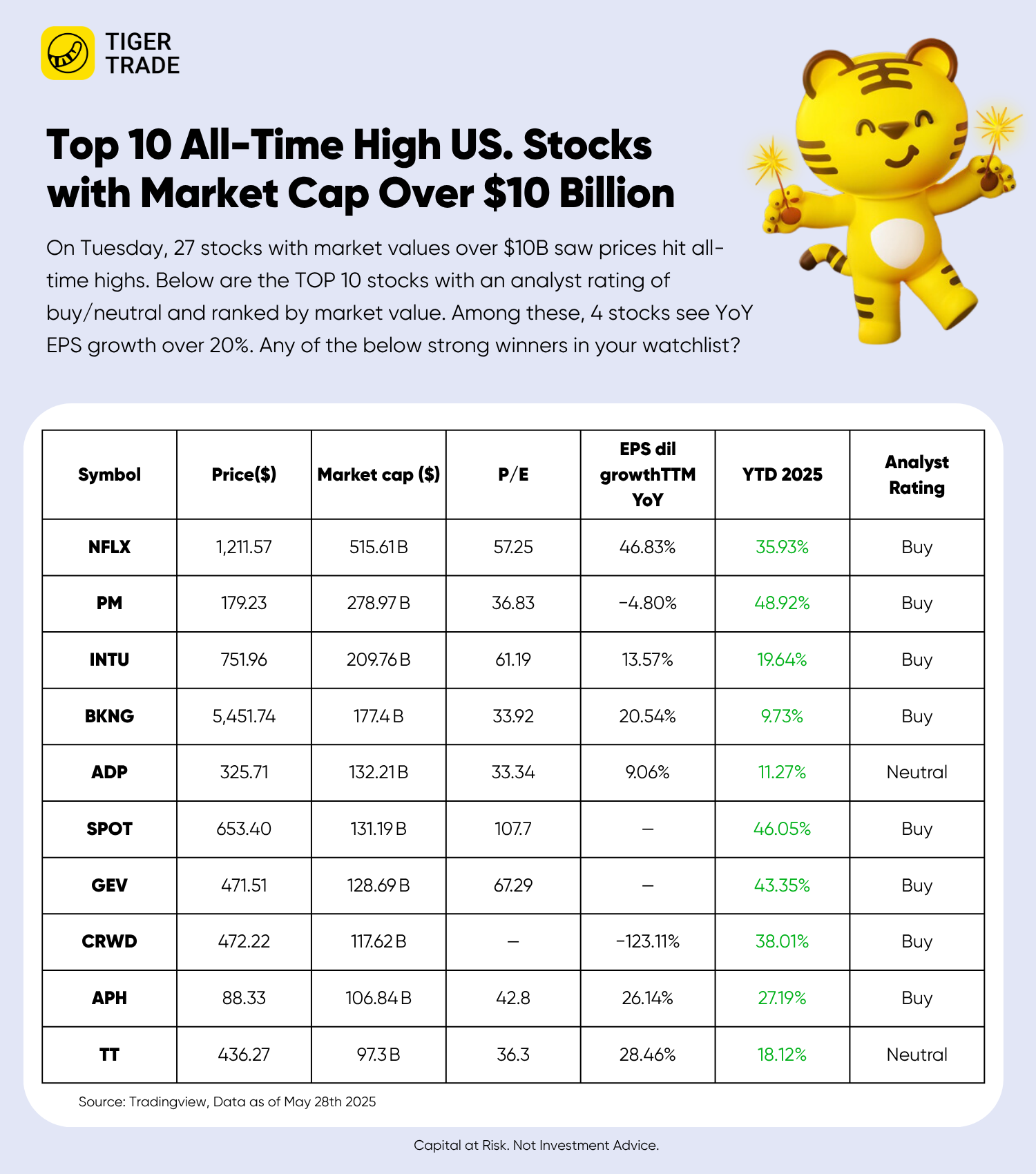 🎉27 $10B+ US Stocks Hit New Highs: NFLX, PM, INTU Lead & Uptrend Drivers