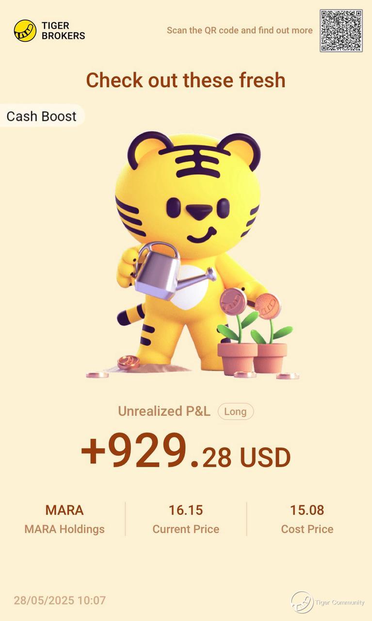 $MARA Holdings(MARA)$ is having a strong move today, fueled by several key factors: short-covering pressure from before last Thursday, Bitcoin's price rally, and the so-called “Trump effect.” Trump’s own company reportedly increased its BTC holdings, plus there's the ongoing Bitcoin conference where new pro-crypto policies might be announced. As a Bitcoin mining stock, MARA tends to surge alongside BTC’s momentum. Short-term strength looks real, and mid-term potential hinges on policy developments,definitely one to keep an eye on.